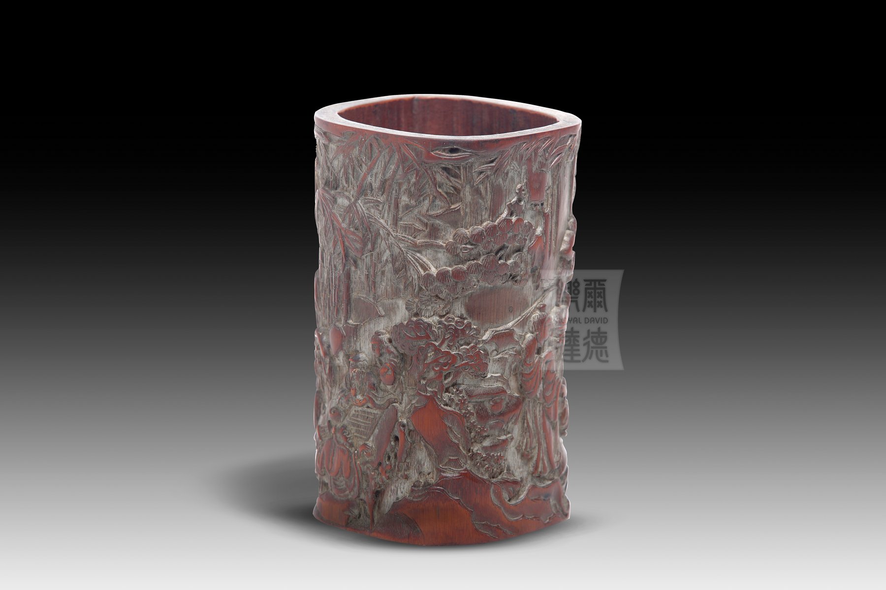 BH-009 竹雕四方筆筒 - “郊外相聚樂”