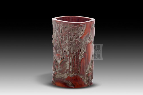 清 四方筆筒-“郊外相聚樂”
