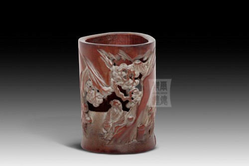 清 三角形筆筒-“松下老人”