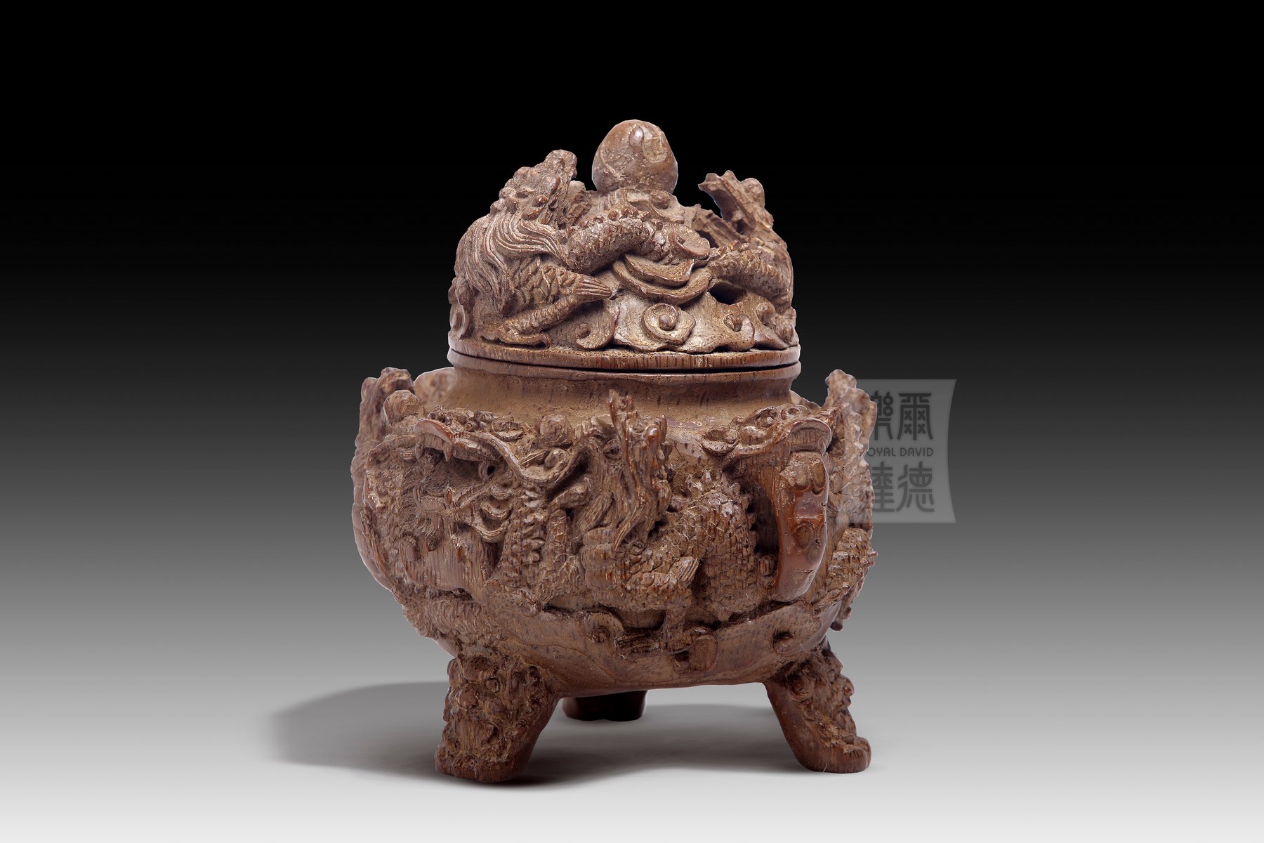 BT-008 竹雕 - 盤龍蓋鼎