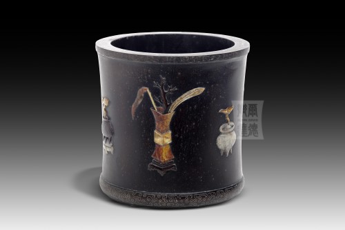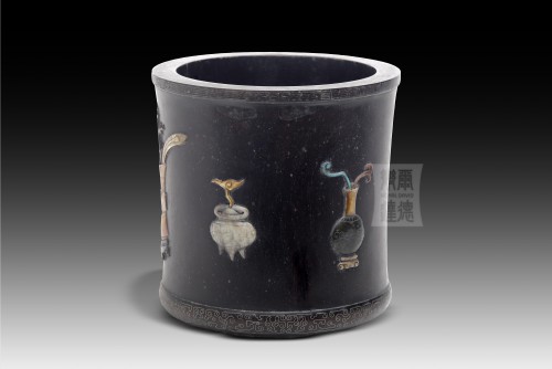W-003 紫檀木嵌玉石筆筒