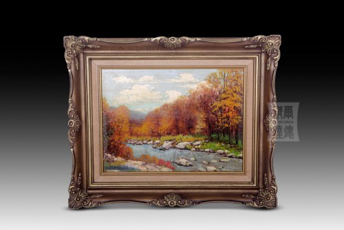 歐洲百年油畫《小河秋景》