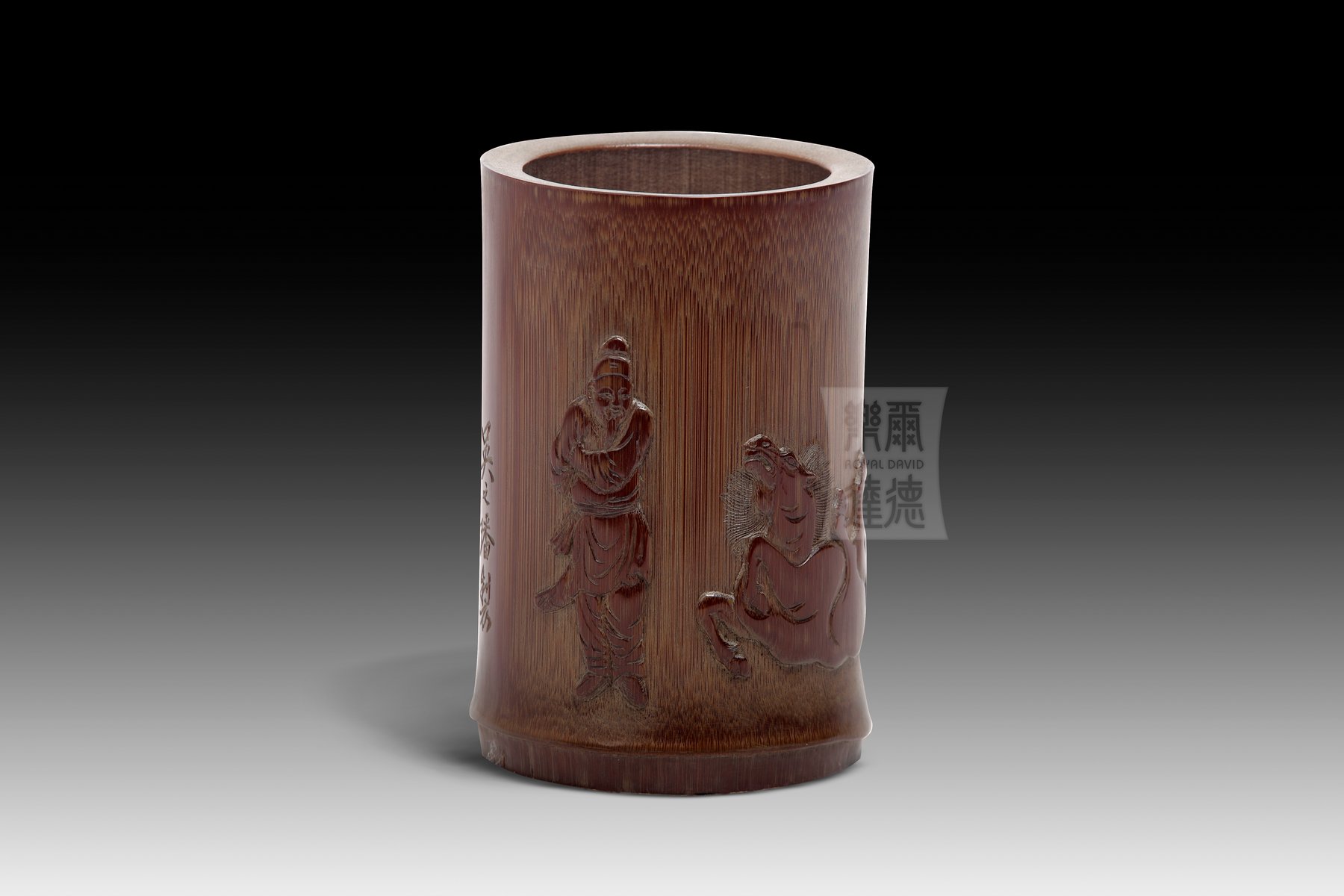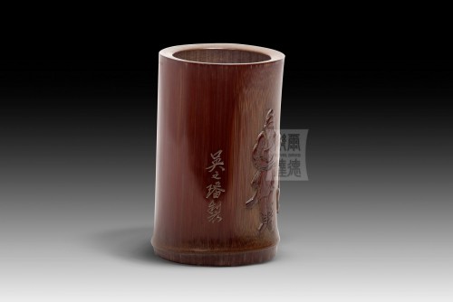 BH-013 竹留青雕筆筒 - “馴馬圖”
