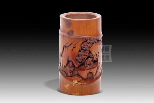 BH-036 竹雕筆筒 - “松下彈琴”