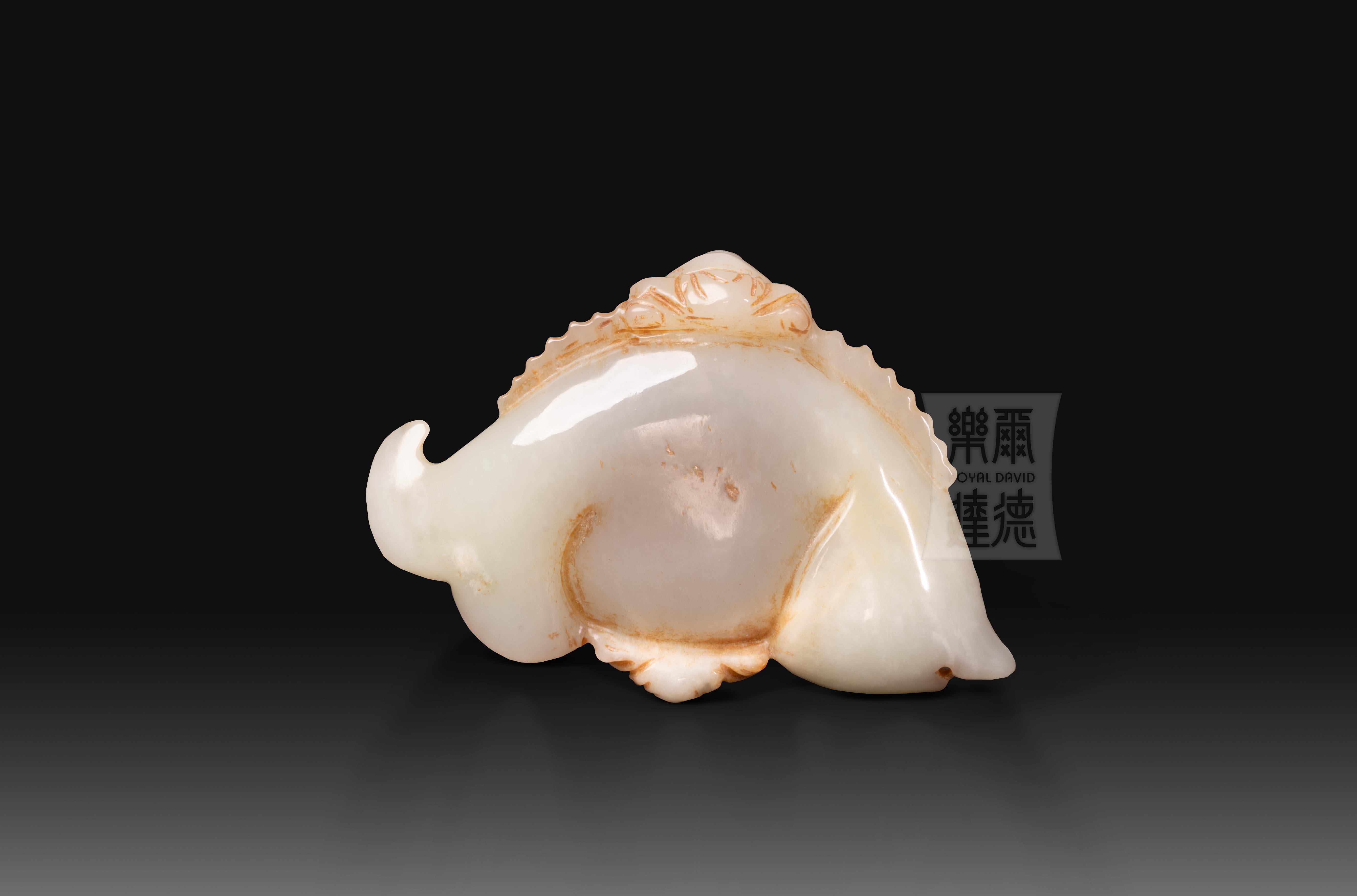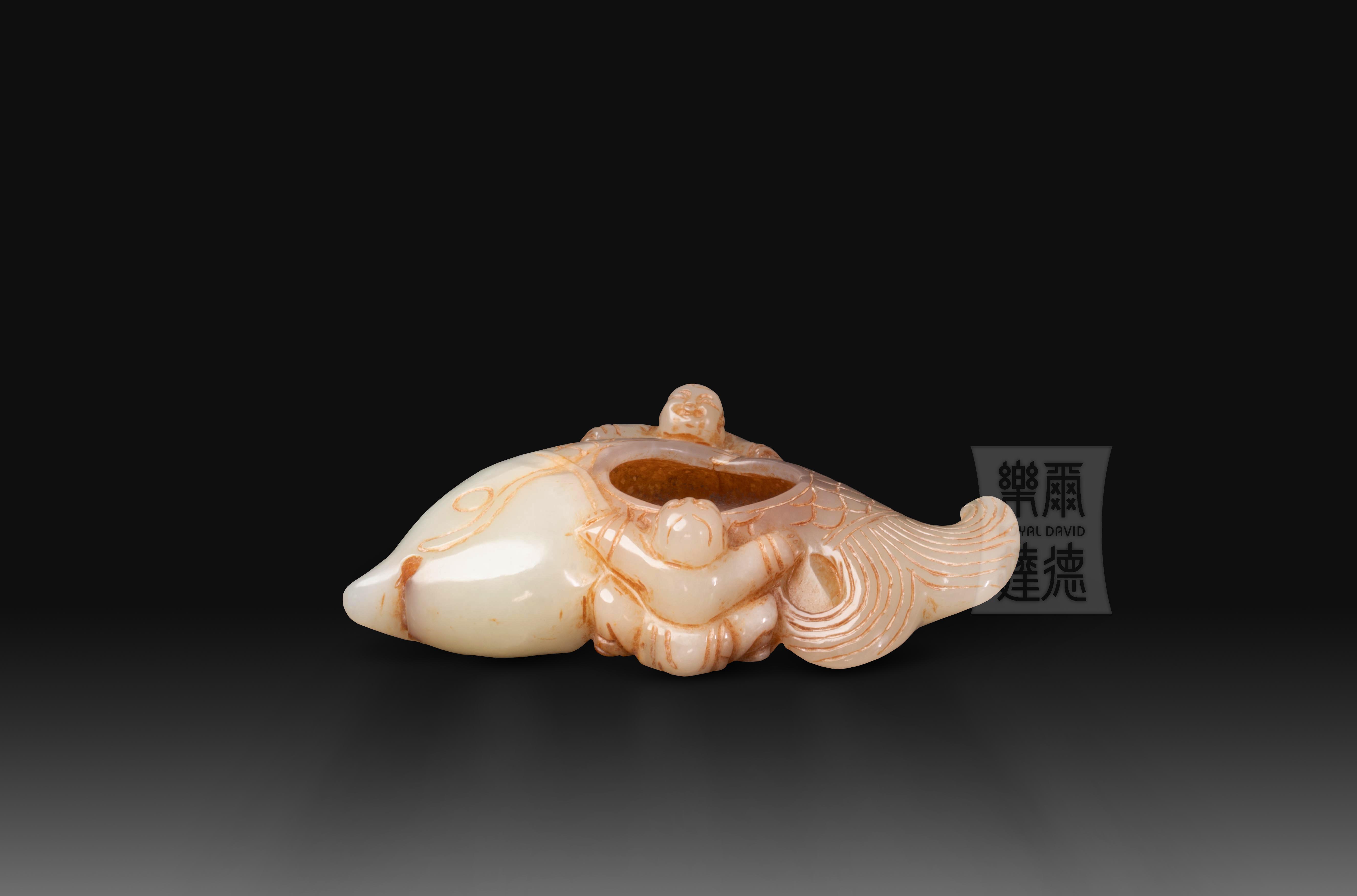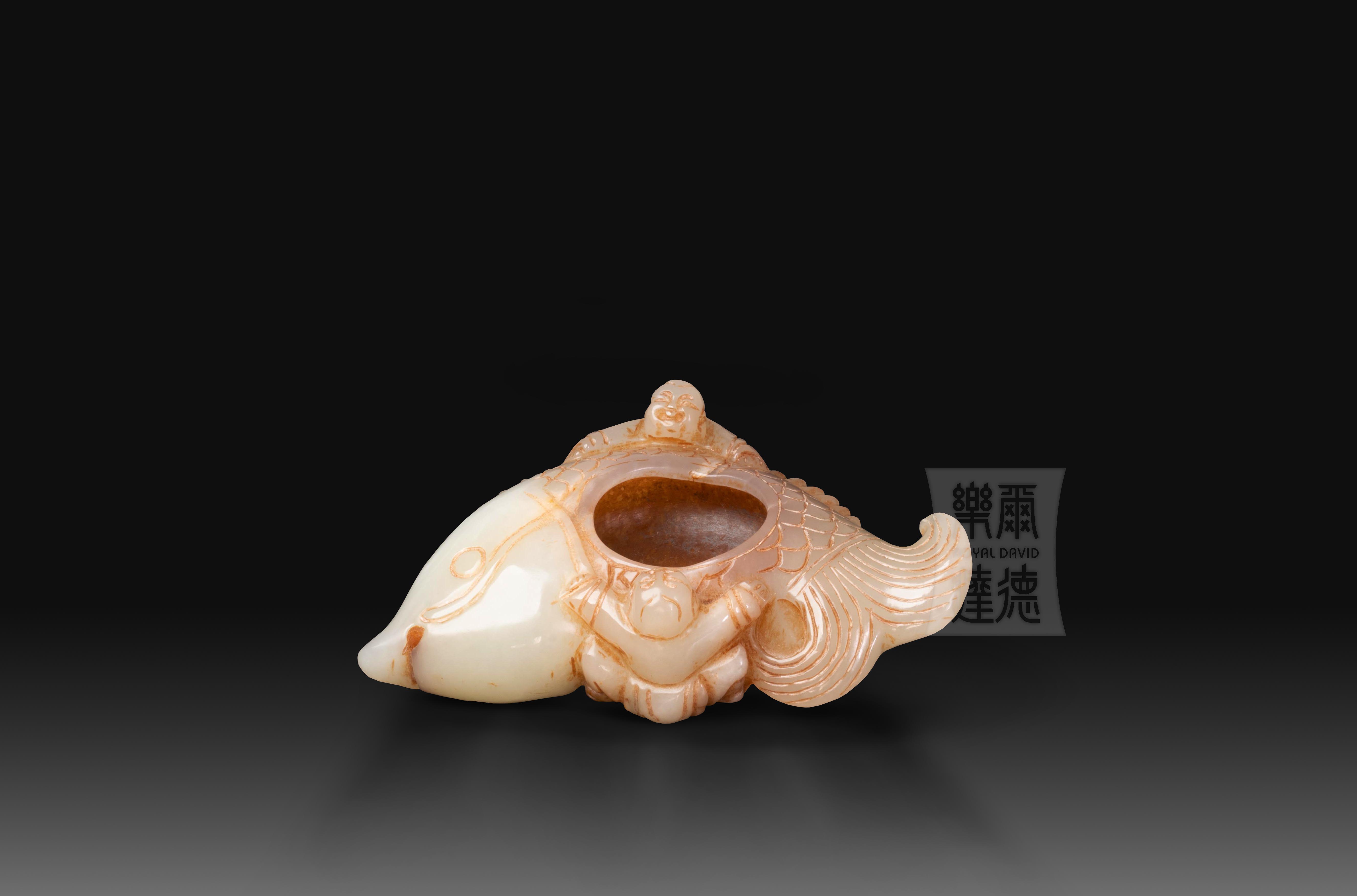 南宋 玉筆洗 (和田玉)“雙童伴鯉”